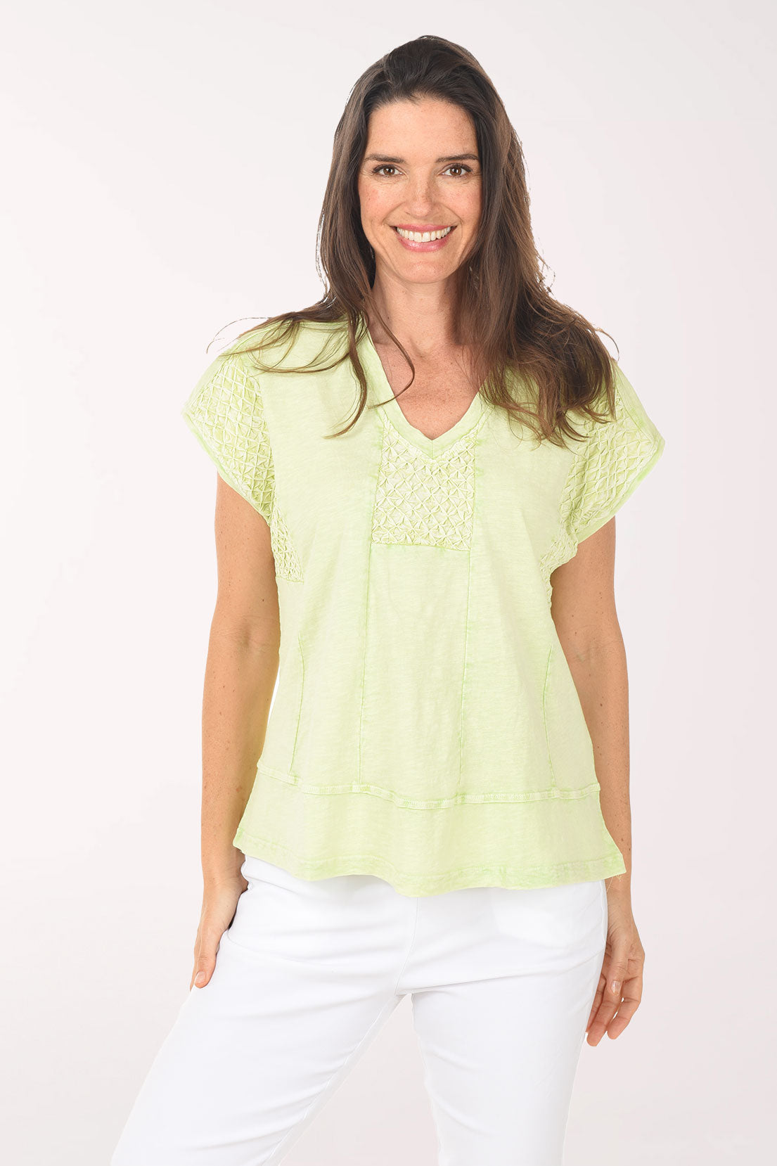 Diamond Pleated Cap Sleeve Tee